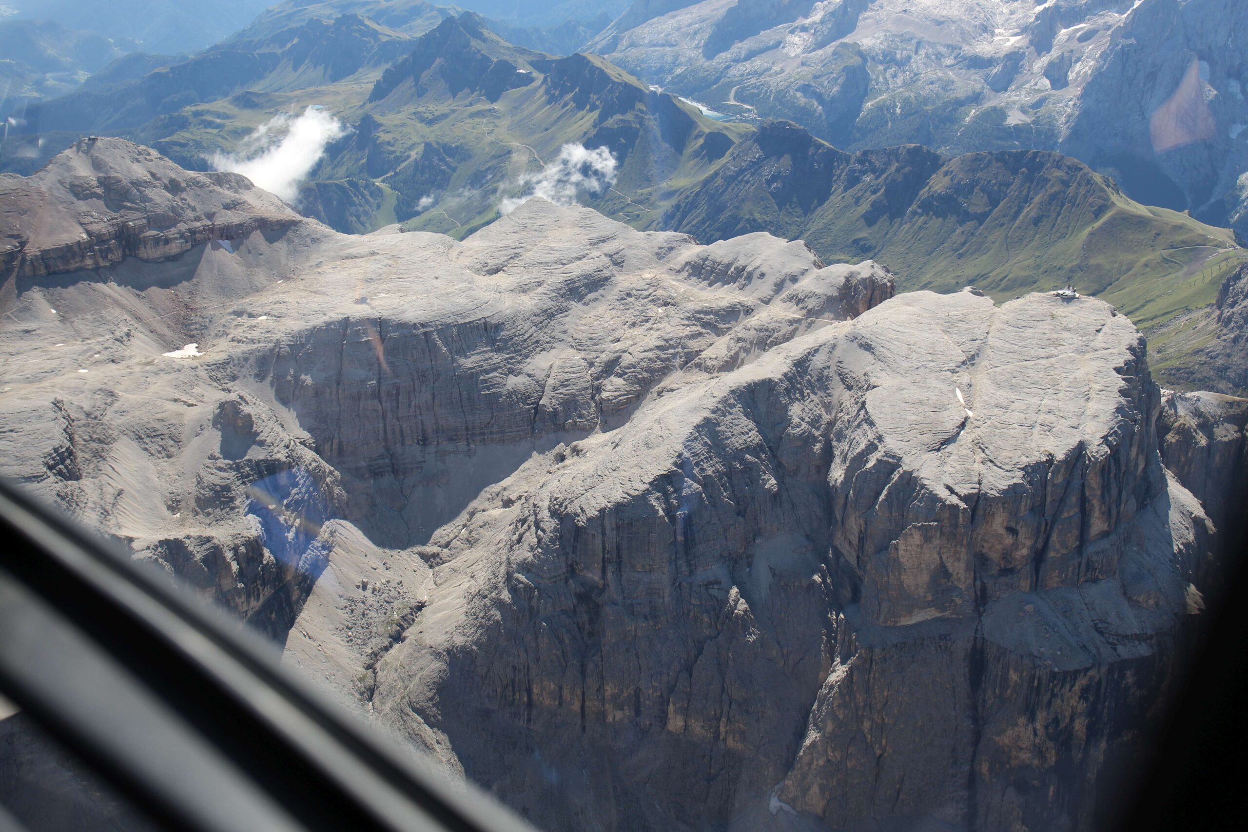 Piz Boè auf der linken Seite – Sass Pordoi am rechten Ende der Sellagruppe