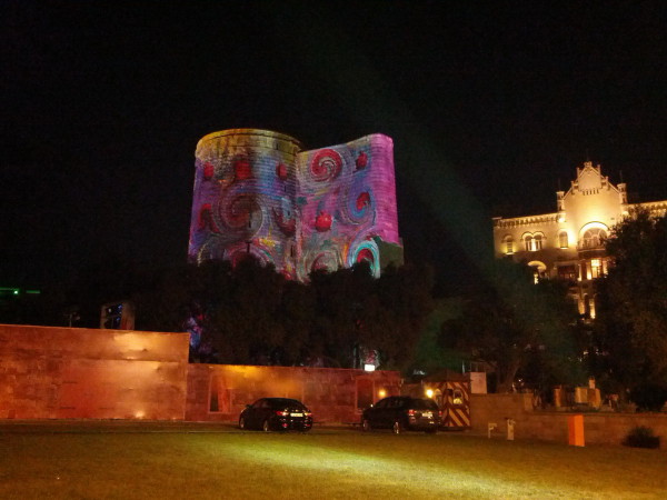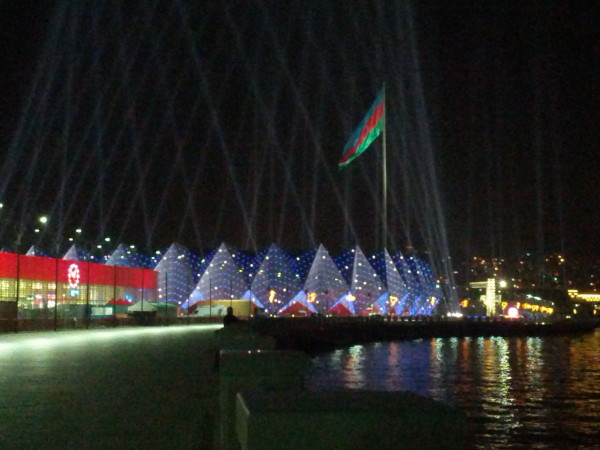 Nachts in Baku leuchtet alles, was leuchten kann: